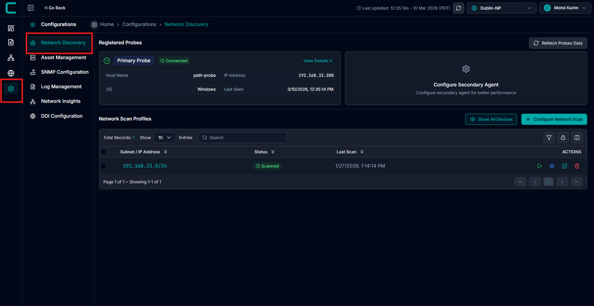 Navigate to Configurations → Network Discovery in the Ceburu Portal.
