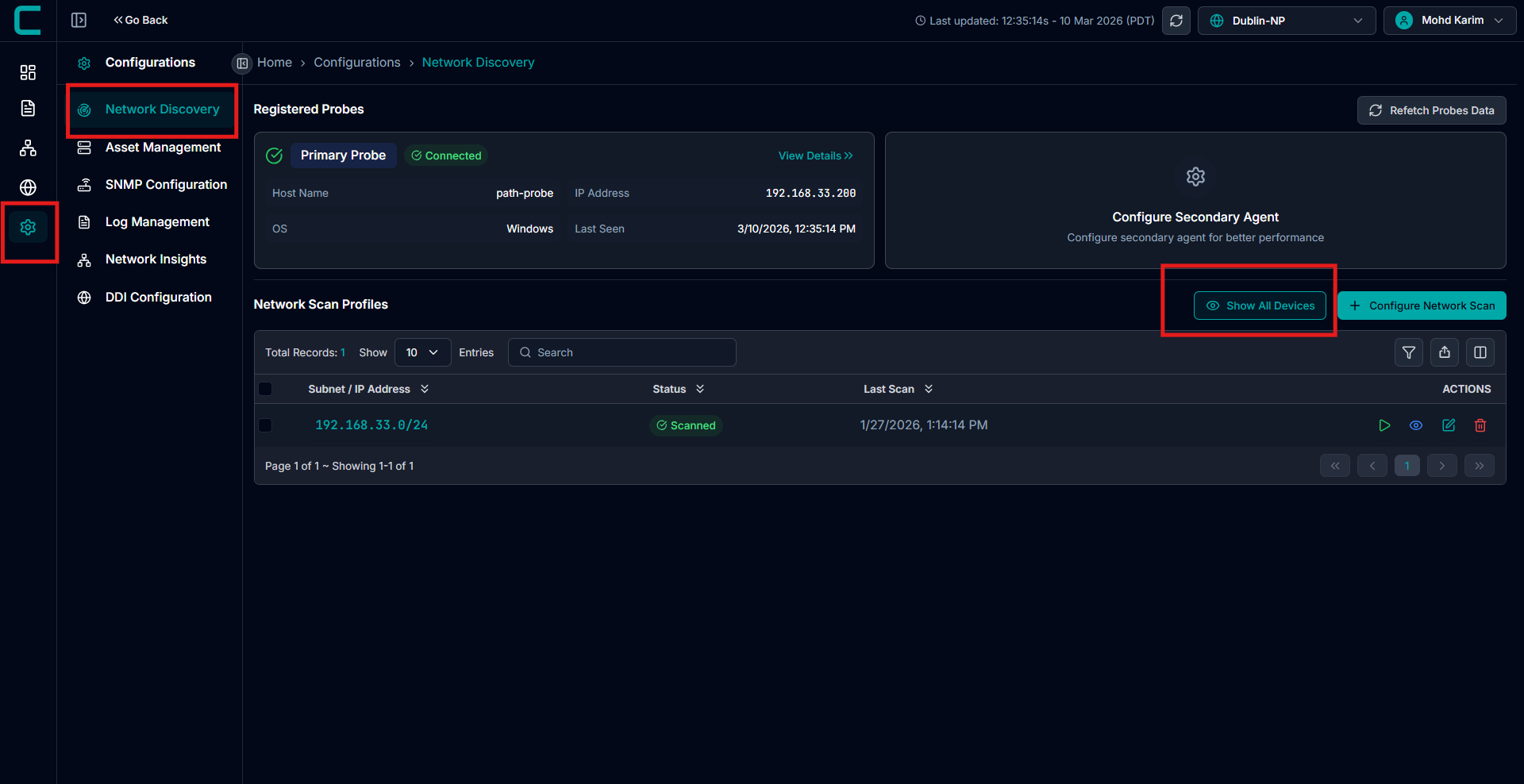 Go to Configurations → Network Discovery in the Ceburu Portal.