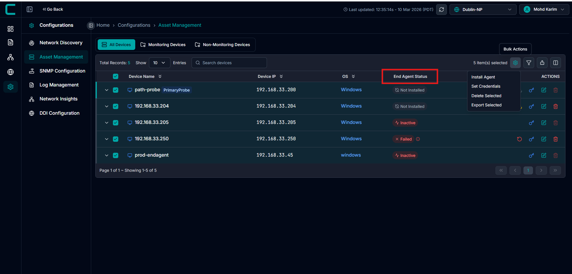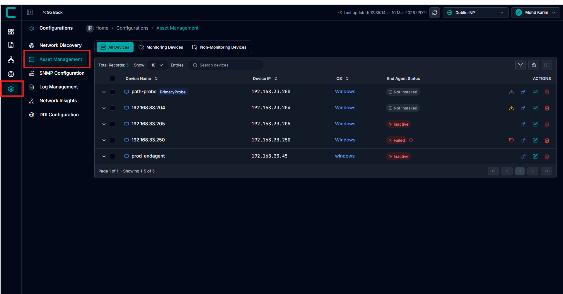 To add the devices to your managed inventory, select the desired devices and click Add to Assets.