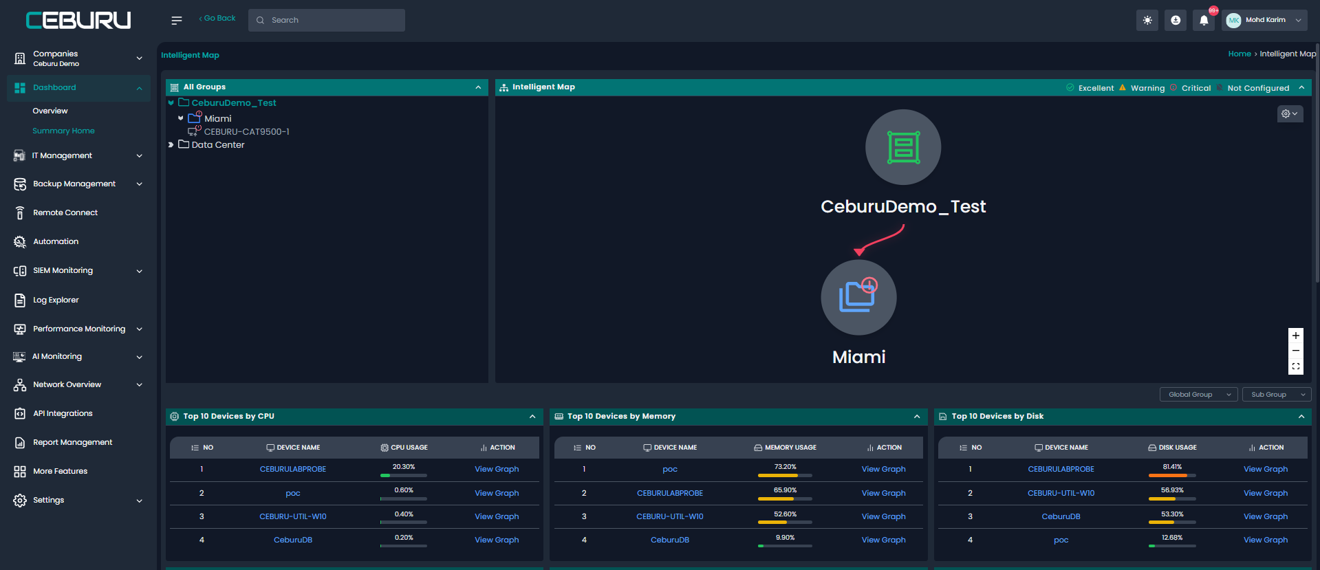 Summary Home dashboard, ensuring that operational insights are always aligned with real-world environments. This approach allows IT teams to monitor, analyze, and troubleshoot infrastructure efficiently, with clear visibility into each location or operational unit.