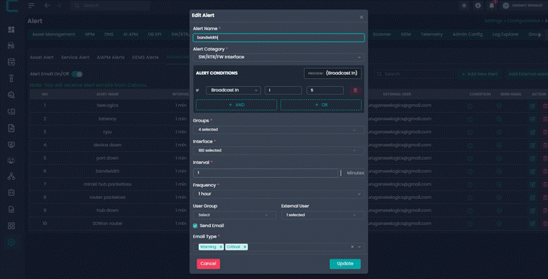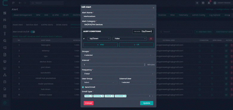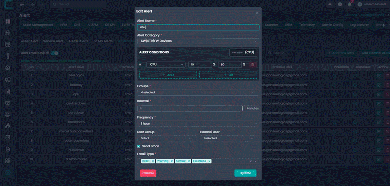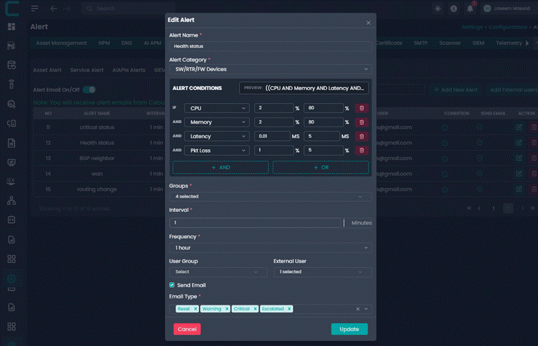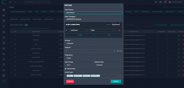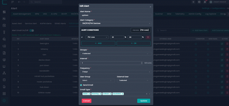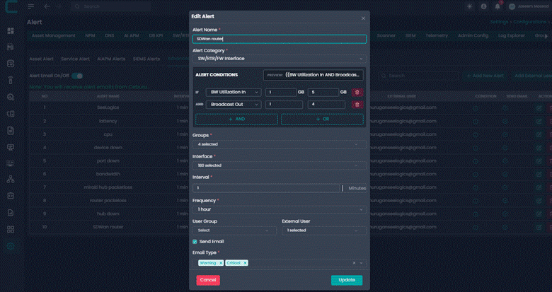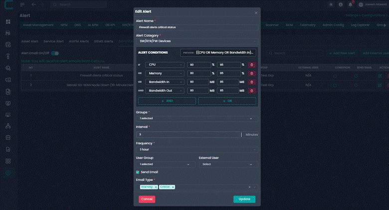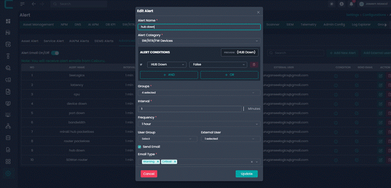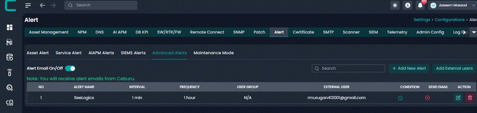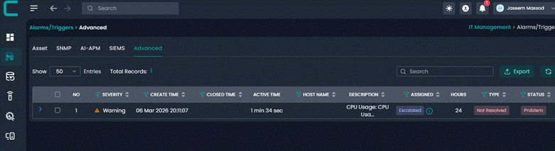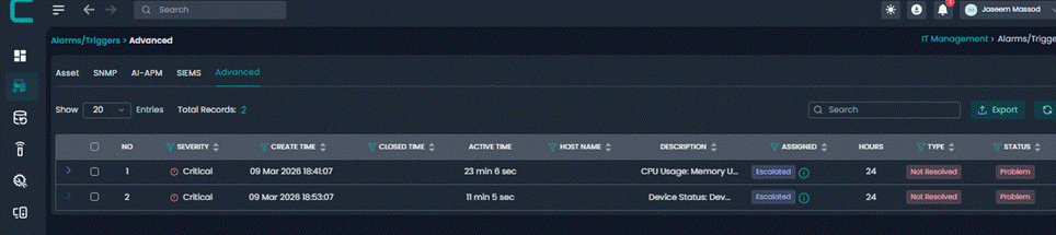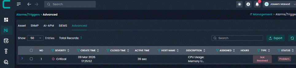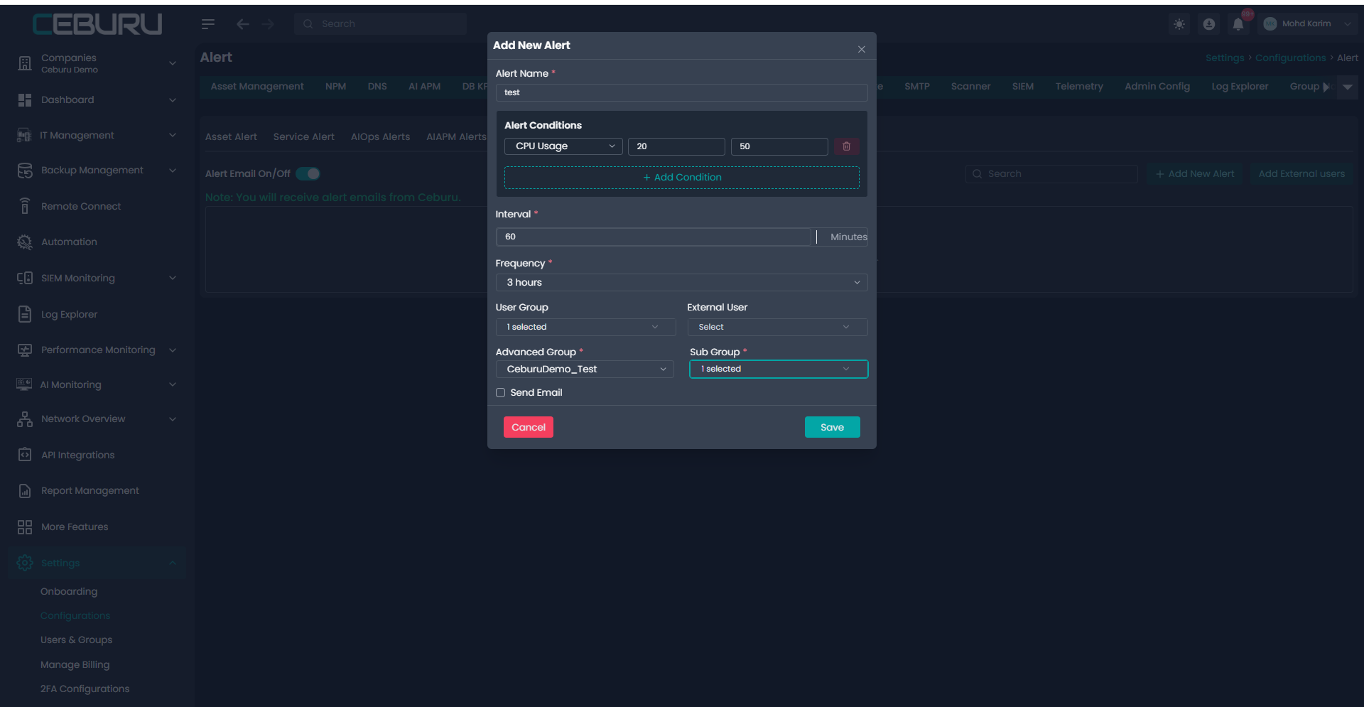 Advanced Alerts allow administrators to create intelligent alert rules based on system metrics and conditions. These alerts help proactively monitor infrastructure and notify the right users or groups when defined thresholds are breached.