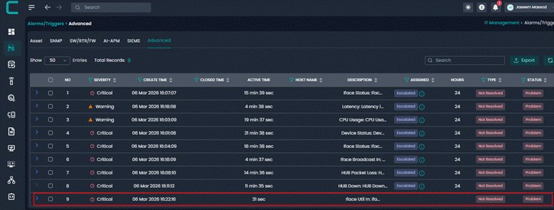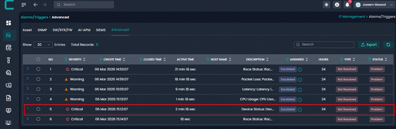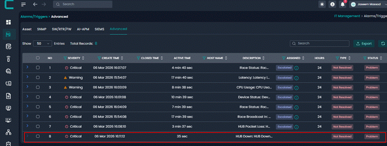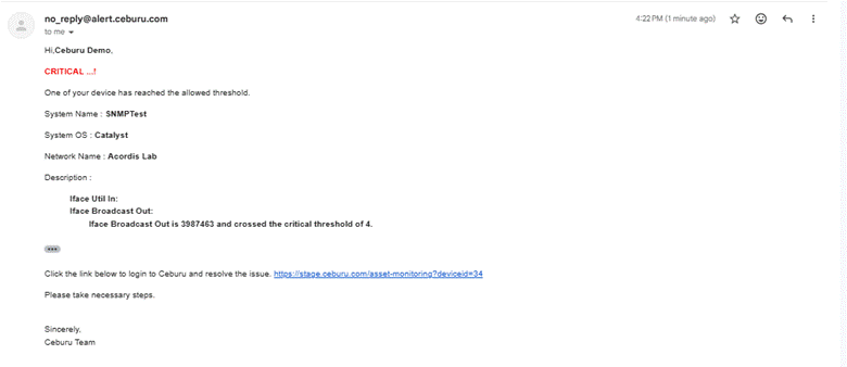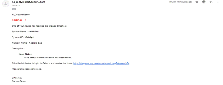 This alert is triggered when a non critical node enters a critical operational state. Even though the device is not classified as critical infrastructure, the alert ensures visibility into major issues affecting device functionality.