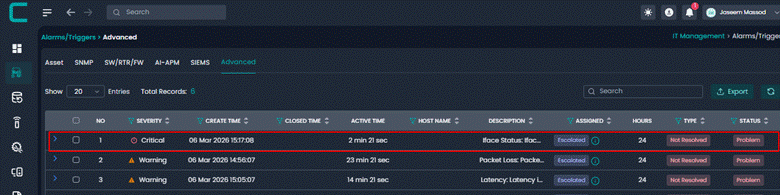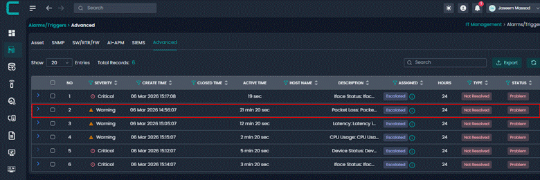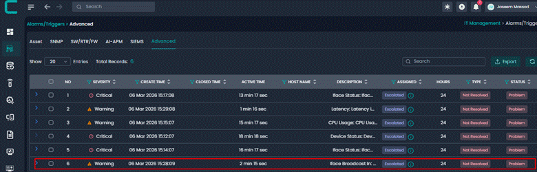 This alert is triggered when network latency exceeds predefined thresholds. High latency can cause slow application performance, delays in communication, and degraded user experience. Escalation occurs if the latency persists or increases.