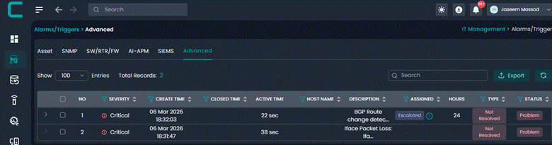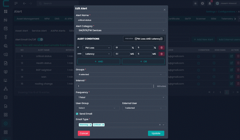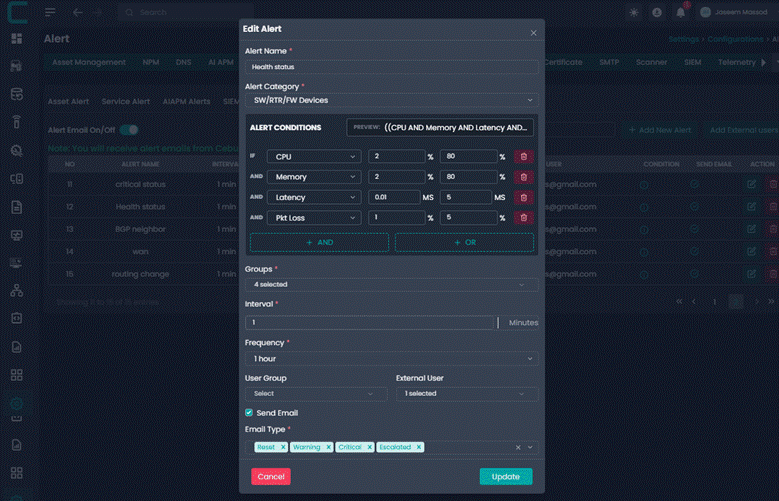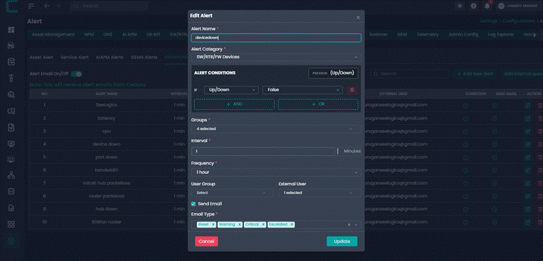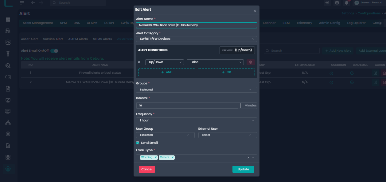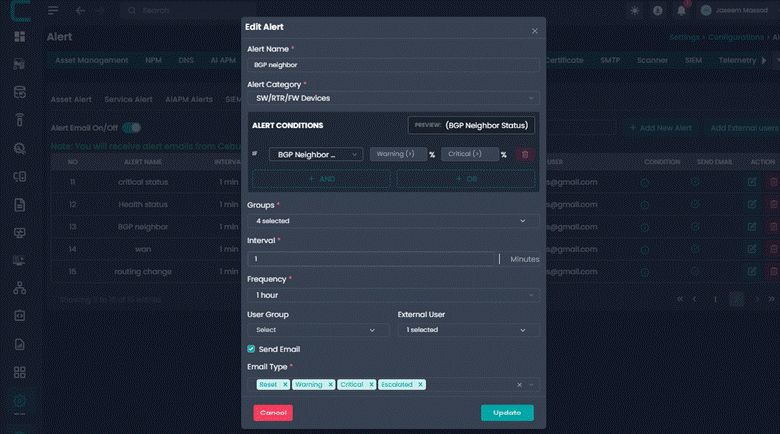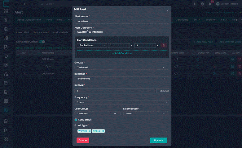 User Group: Select the internal user group that should receive the alert. This allows alerts to be routed to the correct operational or administrative team.