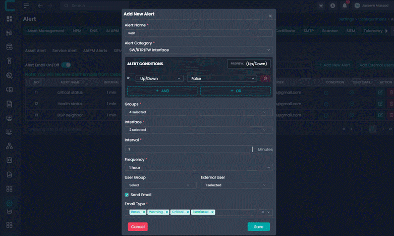 Alert Name: Enter a meaningful name for the alert. This field is mandatory and helps identify the alert later.