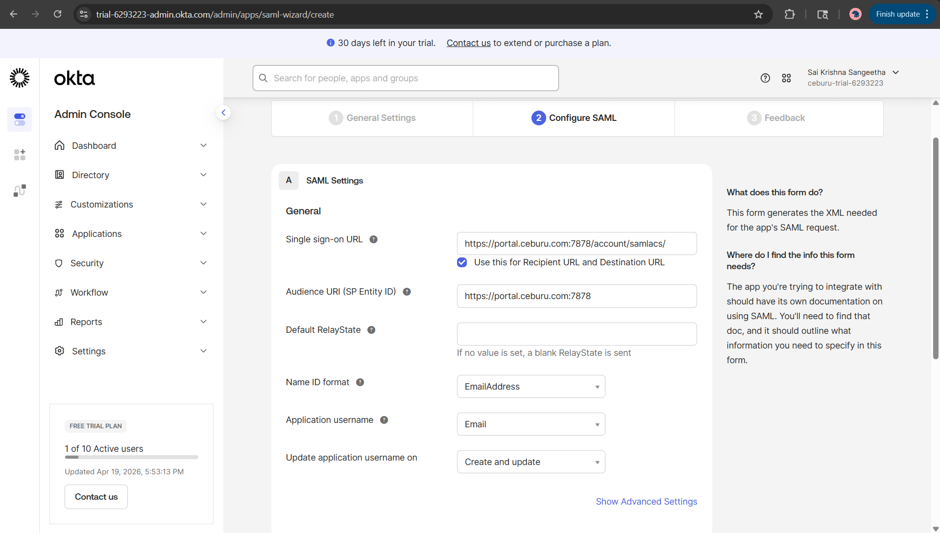ACS URL : https://portal.ceburu.com:7878/account/samlacs/