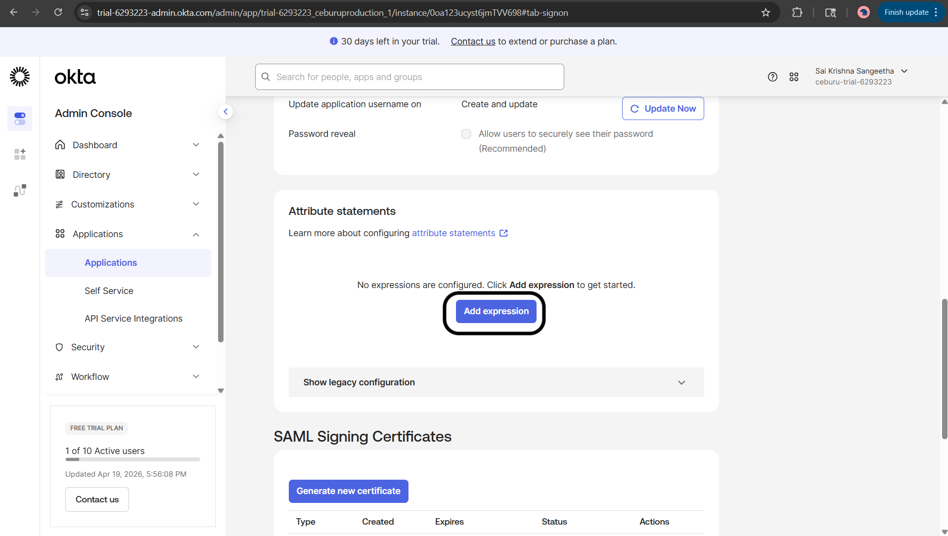 - Identity Provider Sign-In URL: paste the Okta Sign on URL